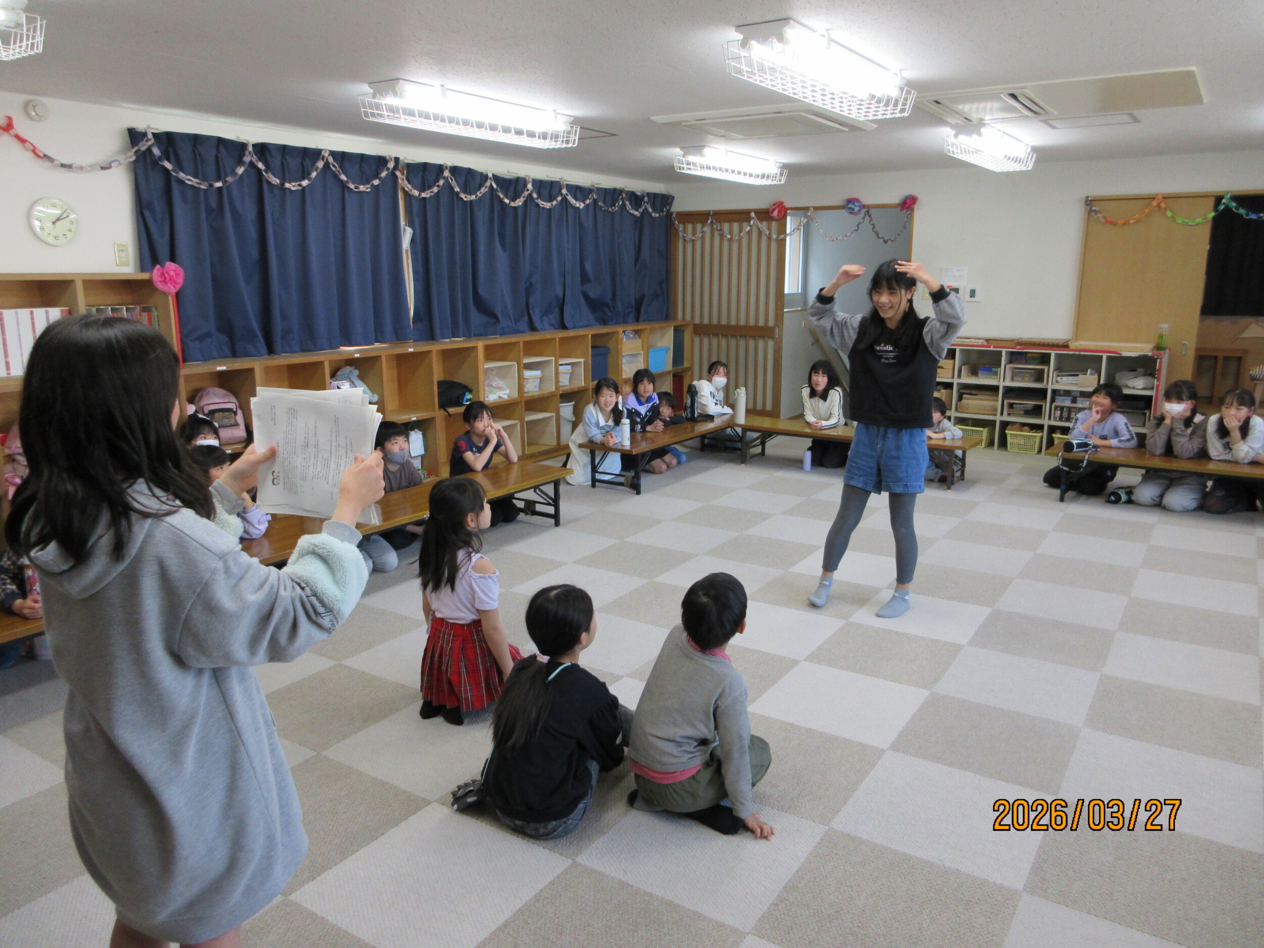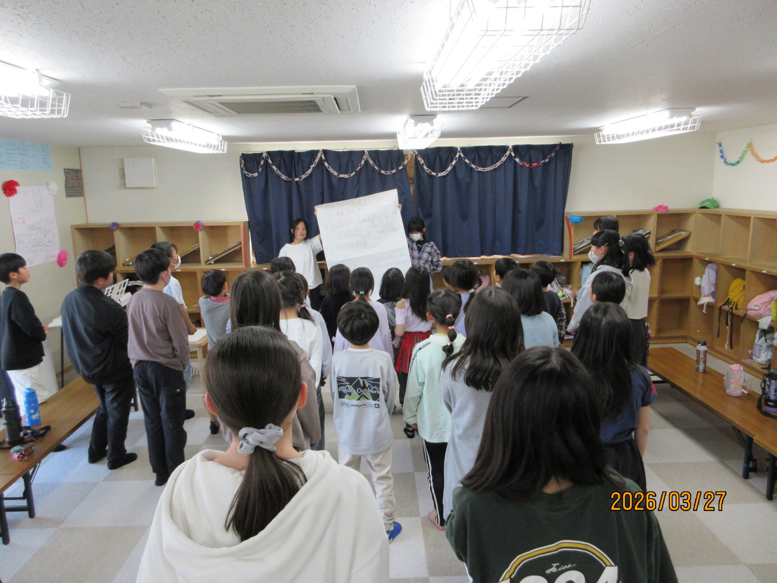 3月27日宮脇2026年03月28日 16:30卒所児をおくる会を開きました🌸🌸🌸合唱🎶劇『パンどろぼう』🍞ジェスチャーゲーム💃みんなからのプレゼント💐6年生あいさつ🥹6年間お疲れ様でした😊 【保護者の声】家ではなかなかできない「本物の体験」に挑戦!